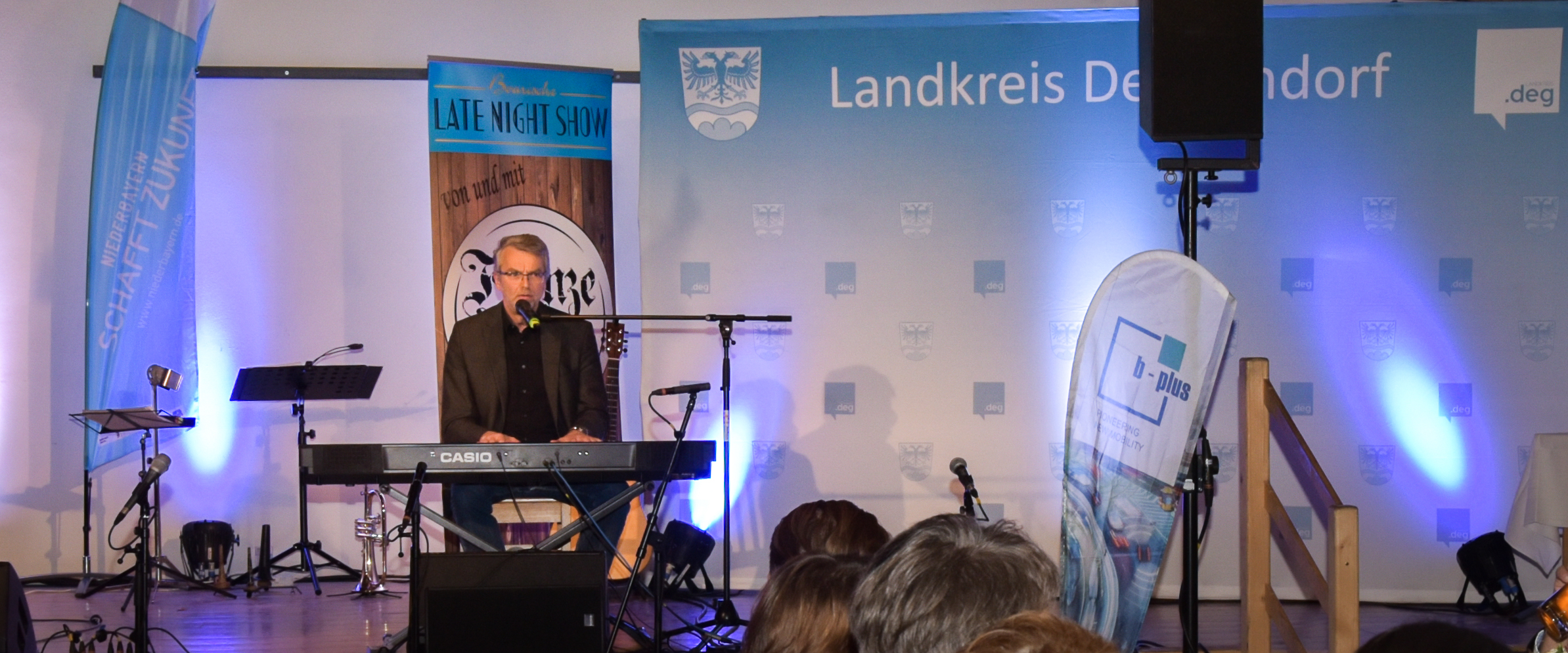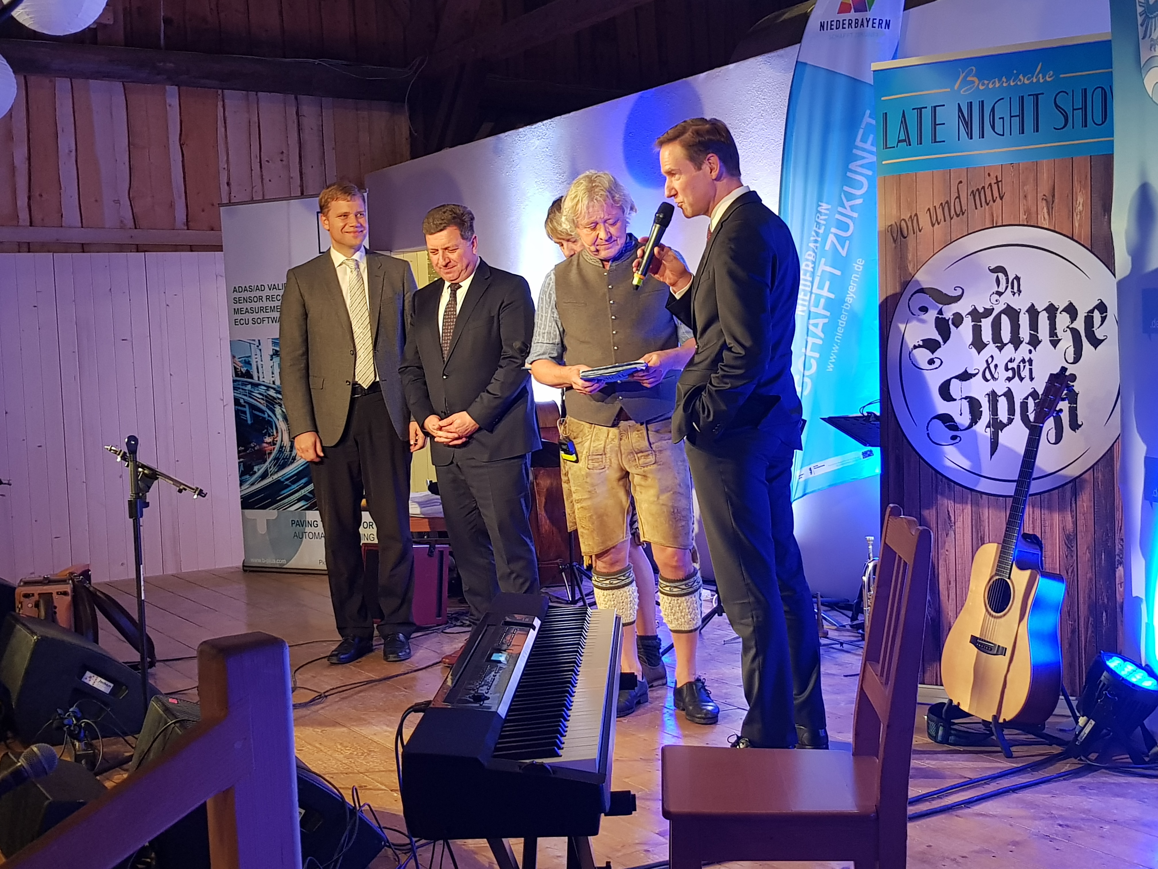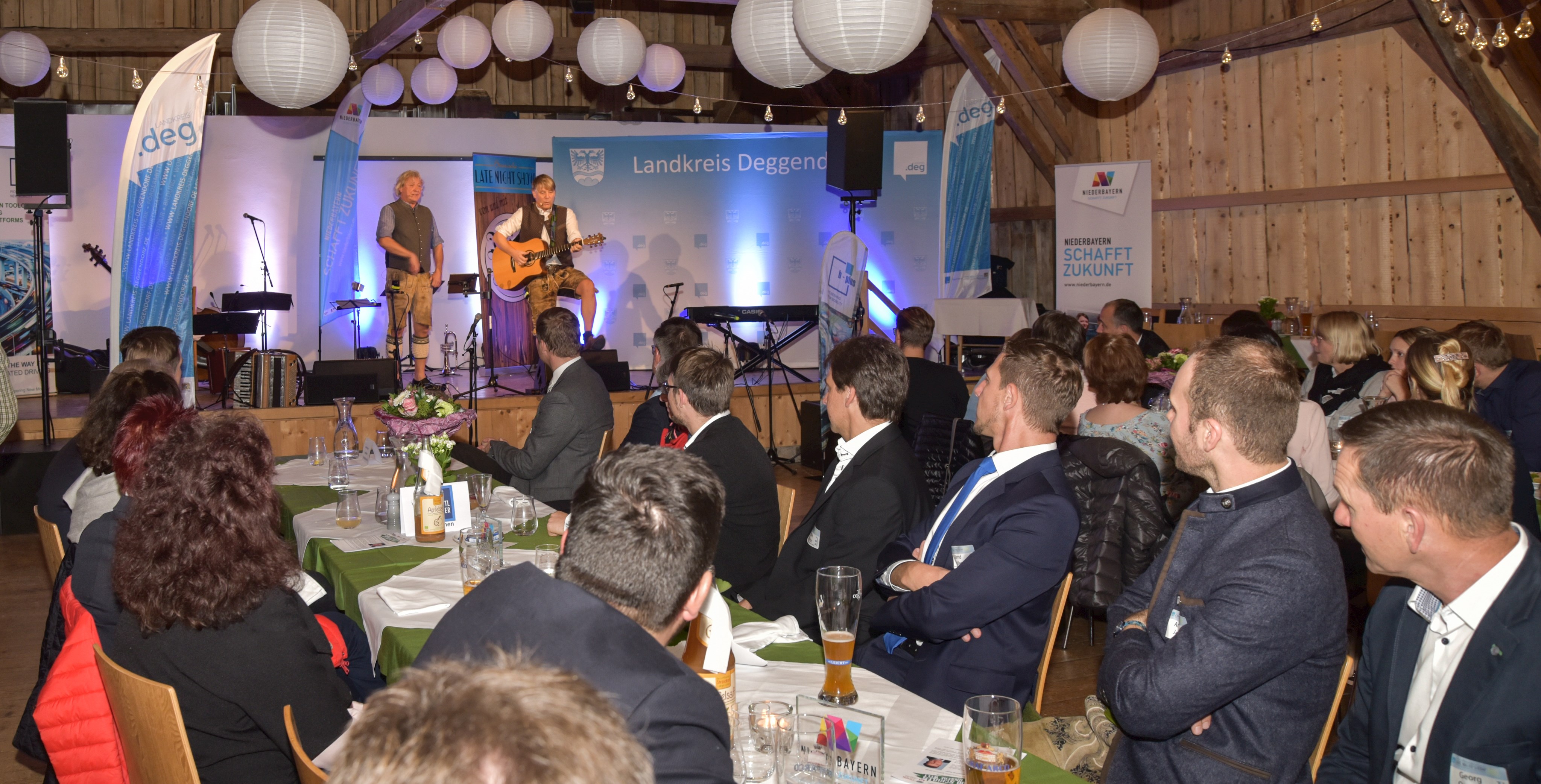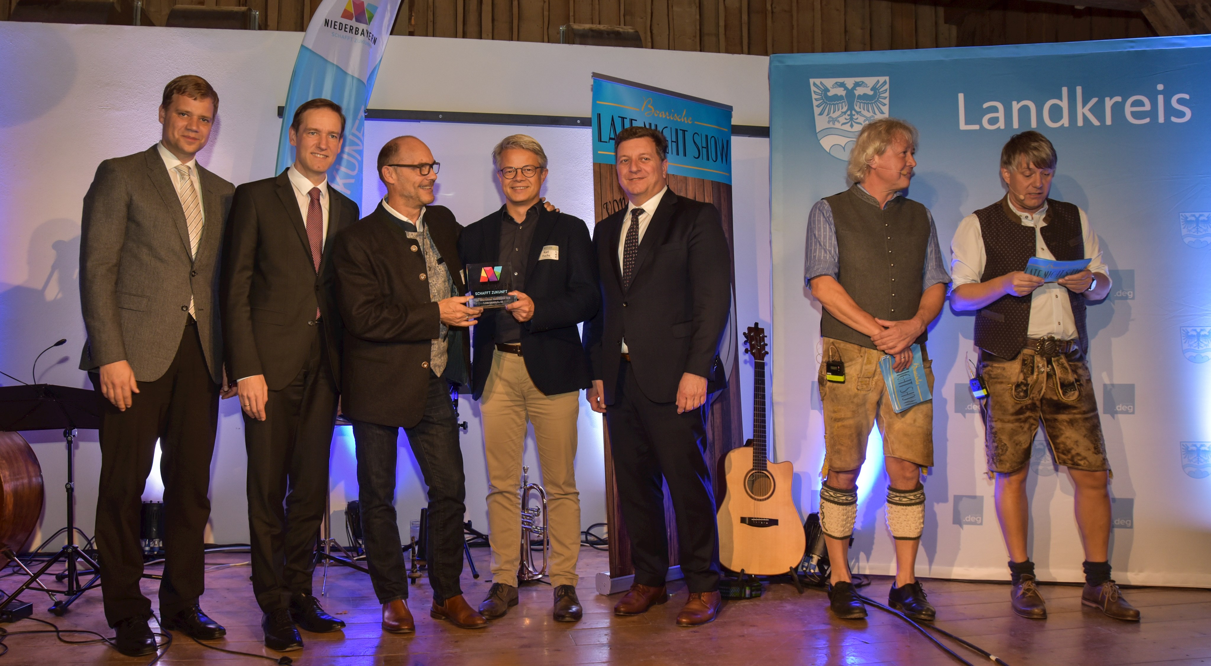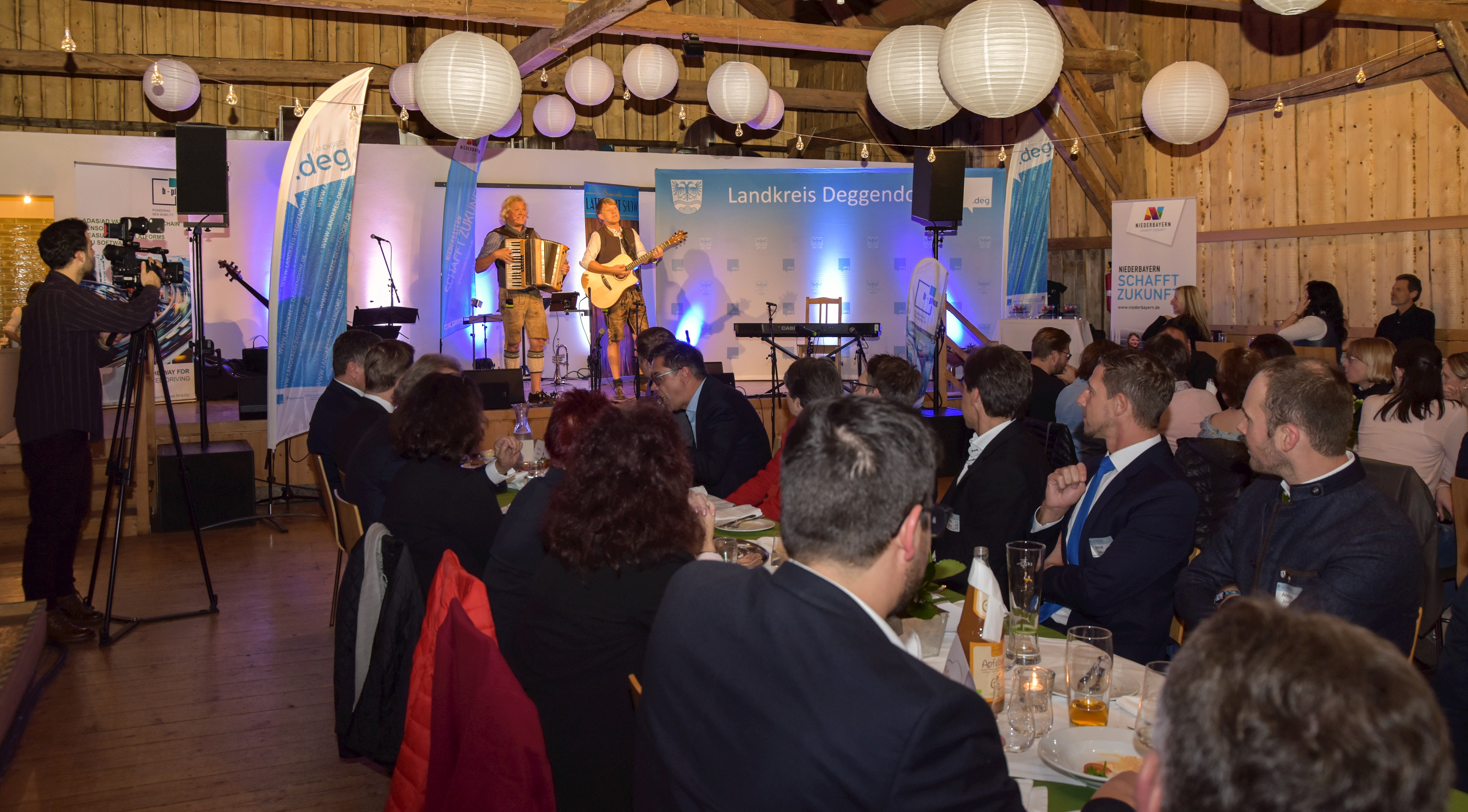 „Mit so einer Show hätt ich heute nicht gerechnet“. Eine der vielen Aussagen, welche man vergangenen Montag aus dem Stadl des Wild-Berghof Buchet in Bernried hören konnte. Dass dies ein unkonventioneller und vor allem unterhaltsamer Ehrenabend wird, mit dem haben die wenigsten Gäste gerechnet als damals die Einladung des Landkreises Deggendorf zur „Boarisch Late Night Show.DEG“ mit Auszeichnung der Top-Unternehmen Niederbayerns, im Postfach lag. In Kooperation mit dem Niederbayern Forum e.V., DonauTV sowie b-plus, wurden knapp 140 Gäste aus der regionalen Wirtschaft bei regionalen Brotzeitschmankerl musikalisch und kabarettistisch unterhalten. Auch die anwesenden Ehrengäste mit Landrat Christian Bernreiter, Bezirkstagspräsident Dr. Olaf Heinrich und Regierungspräsident Niederbayerns, Rainer Haselbeck, hatten sichtlich Spaß im Wild-Berghof Buchet.