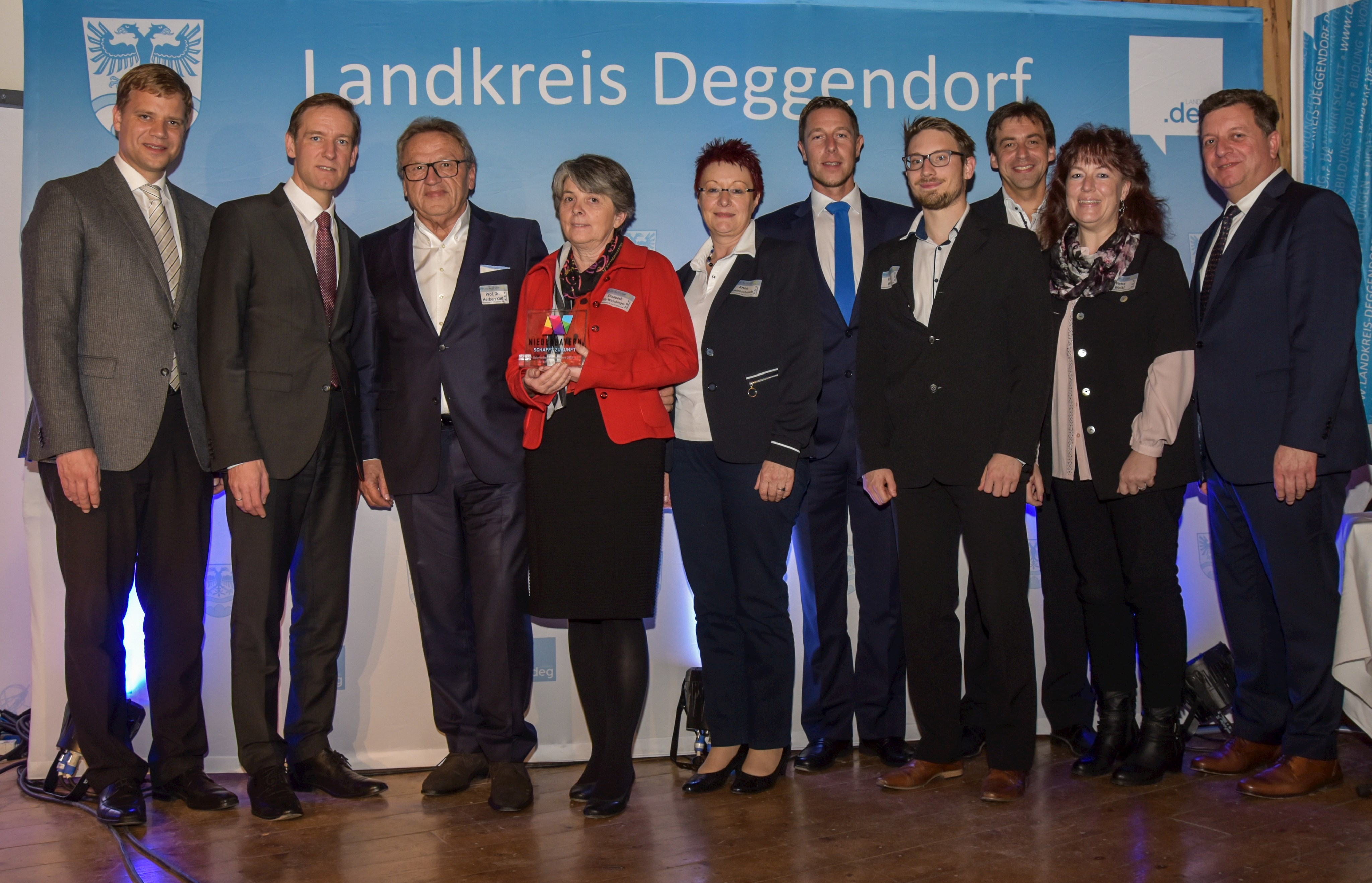 Zwischen den einzelnen künstlerischen Einlagen wurden die Hauptgäste des Abends geehrt: Die Top-Unternehmen Niederbayerns! 7 Unternehmen aus dem Landkreis Deggendorf durften sich über diese Auszeichnung freuen und einen Pokal entgegennehmen. Geehrt wurden die Firmen Pinter Guss, AVP-Autohaus, Congatec, T.CON, GB-Tech, Wethje Carbon Composites und die Kanzlei Dr. Kittl&Partner.
