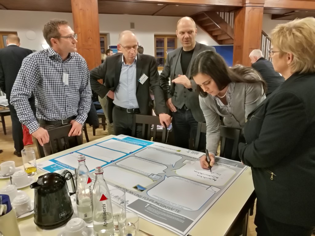 Dr. Stefan Kaduk regte die knapp 80 Teilnehmer aus den verschiedensten Branchen an, sich Gedanken zu machen: aus welchen Mustern könnte man in ihren Unternehmen ausbrechen? Es muss nicht immer eine radikale Veränderung sein. Manchmal reicht ein wenig Mut – auch zum Zuhören. Negative Haltung zu neuen Denkanstößen kann Stillstand bedeuten. Wer der Meinung ist, dass Veränderungen in seinem Unternehmen sowieso nicht umsetzbar sind, wird nie die Spur wechseln – wie Kaduk bildlich präsentierte. Natürlich wird nicht jede Neuerung sofort ein Durchbruch sein, aber vielleicht gilt es gerade die Lücken zu füllen, die nicht in der nächsten Umgebung greifbar sind. „Man muss auch auf Managementebene sehr oft experimentieren. Nur so kann man auch Veränderungen und Entwicklungen vorantreiben und gestalten. Ich will auch nicht sagen, dass dies der einzig richtige Weg ist. Wir haben aber schon festgestellt, dass wenn man mehr in Personal investiert- sowohl Geld als auch Zeit- als dringend notwendig, auch wirtschaftlich erfolgreich sein kann,“ nennt Dr. Stefan Kaduk seine Erfahrungen und Absichten. Kleine Veränderungen bewirken meist mehr, als eine komplette Umstrukturierung. Reflektieren - auch über sein eigenes Handeln – dazu sollte jeder bereit sein. Im anschließenden Workshop wurde sehr schnell sichtbar, dass er alle Zuhörer mit seinen Impulsen erreicht hatte. Sämtliche Teilnehmer beteiligten sich daran, wie z. B. Experimentier-Ideen im Betrieb aussehen könnten, oder wie es gelingen kann, den Mitarbeitern neue Erfahrungen zu ermöglichen. Fragen, die sich zuerst die Führungskräfte eines Unternehmens stellen müssen, um für das wichtigste Gut das sie haben attraktiv zu bleiben – und zwar für ihre Mitarbeiter.