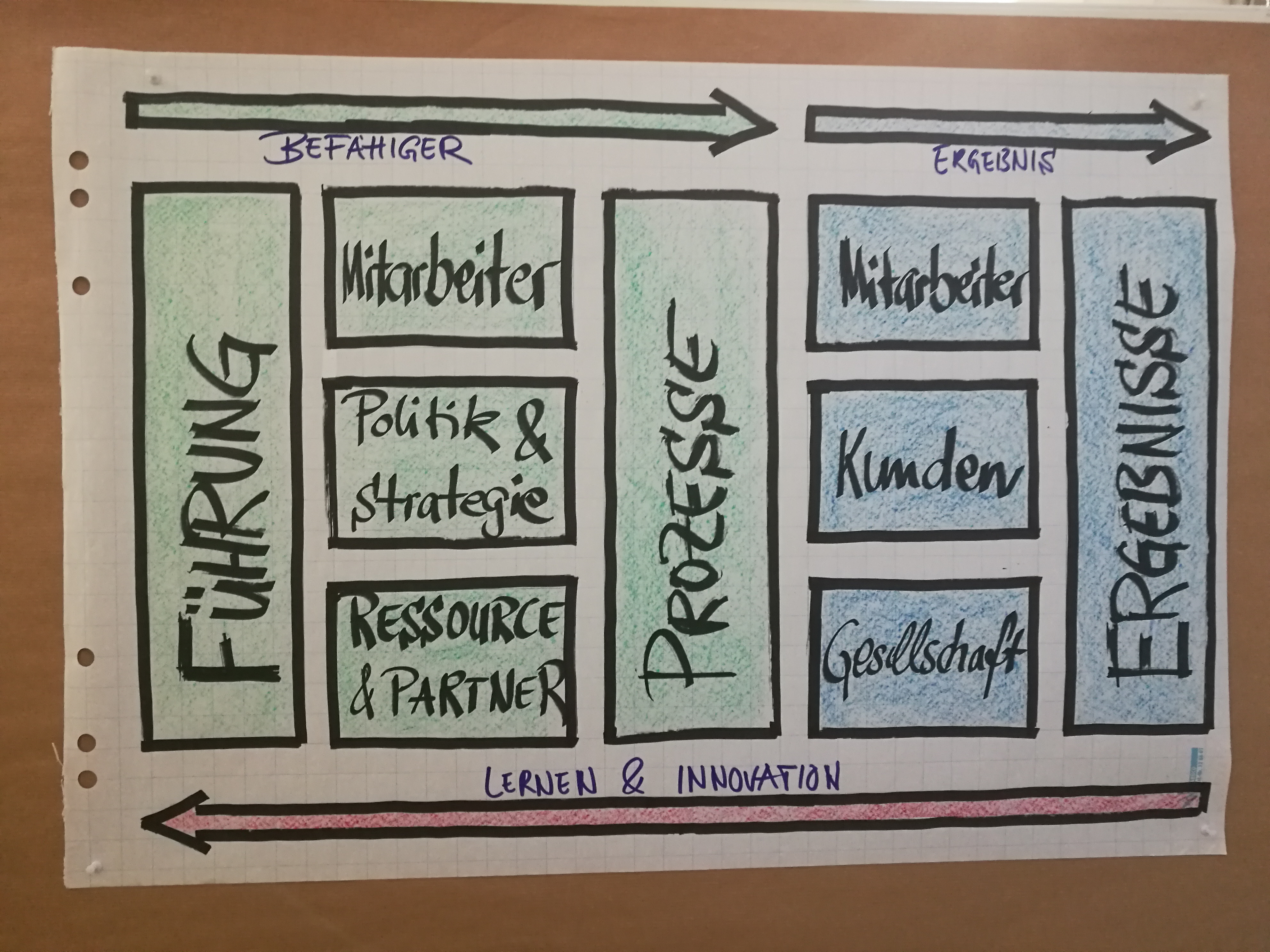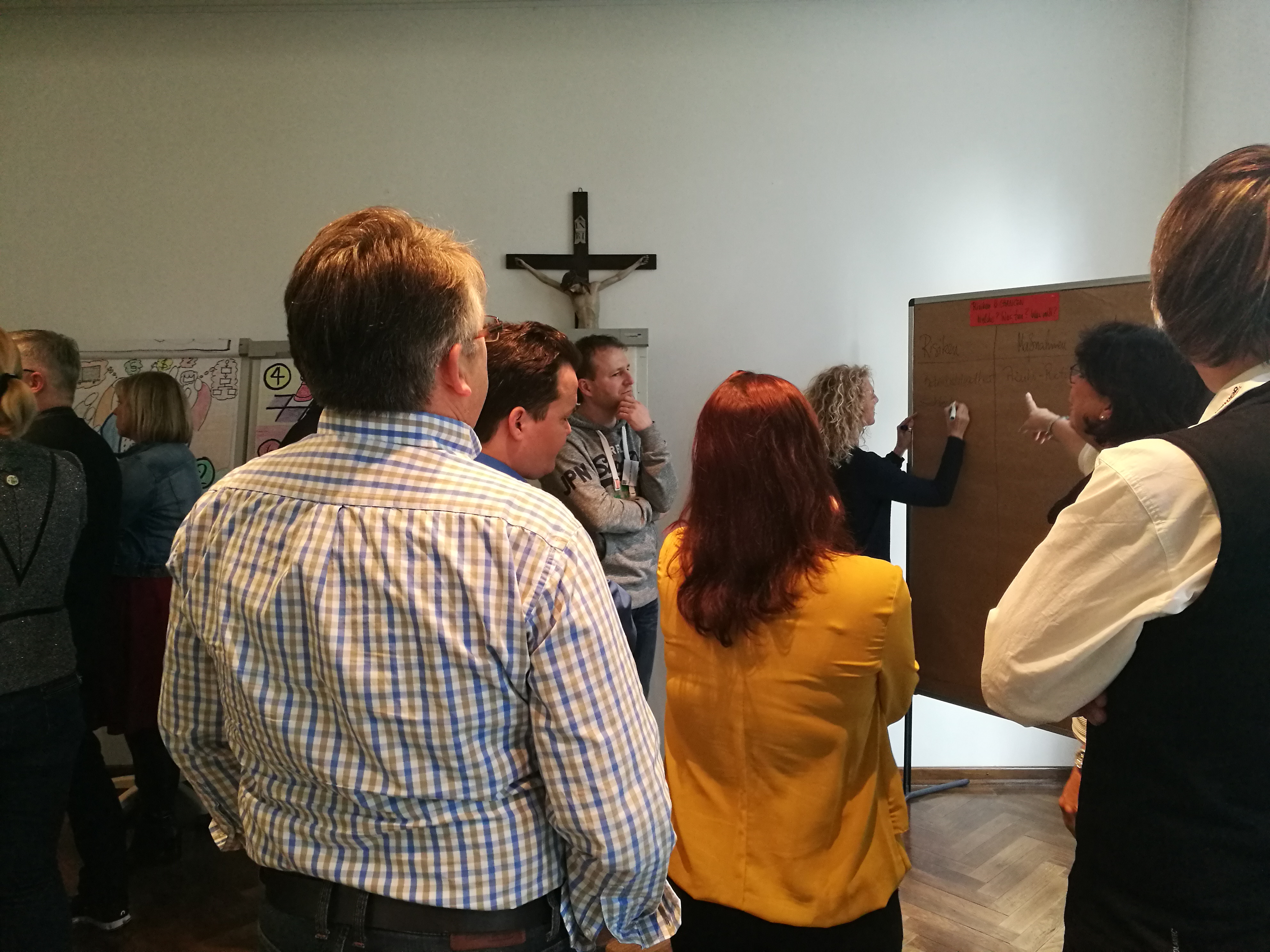 Als Abschluss der Veranstaltung folgte ein kleiner Workshop, bei dem die Unternehmer mehrere Fragen beantworteten. Dabei wurden die vorher sehr theoretischen Aspekte des Qualitätsmanagements auf die Wirklichkeit im Betrieb umgelegt und erste konkrete Anwendungen erarbeitet. Wie kreativ die Unternehmer der Region sind, zeigte sich hier sehr beeindruckend: innerhalb kürzester Zeit waren alle Wände voll mit Ideen und Beispielen aus der Praxis.