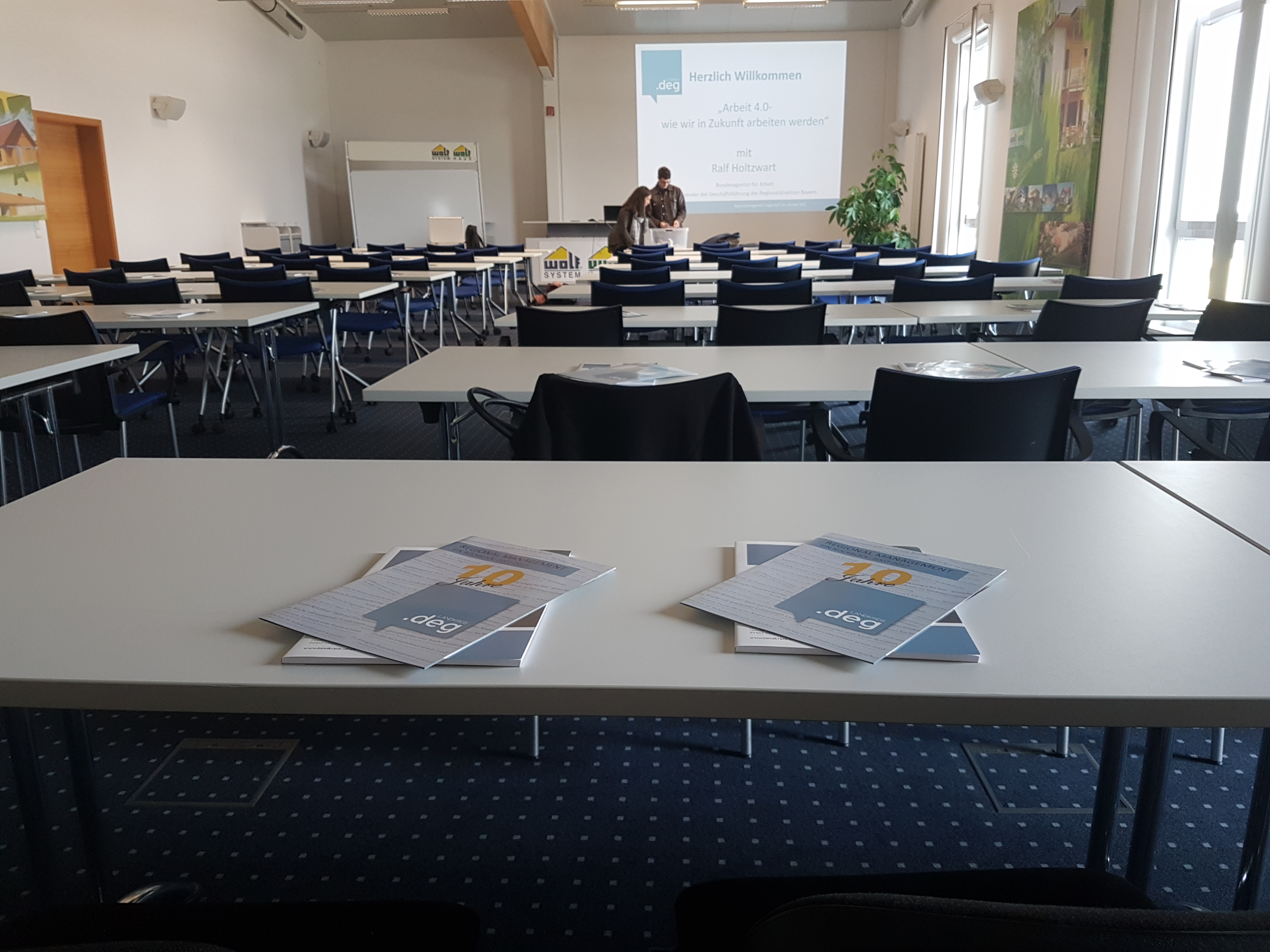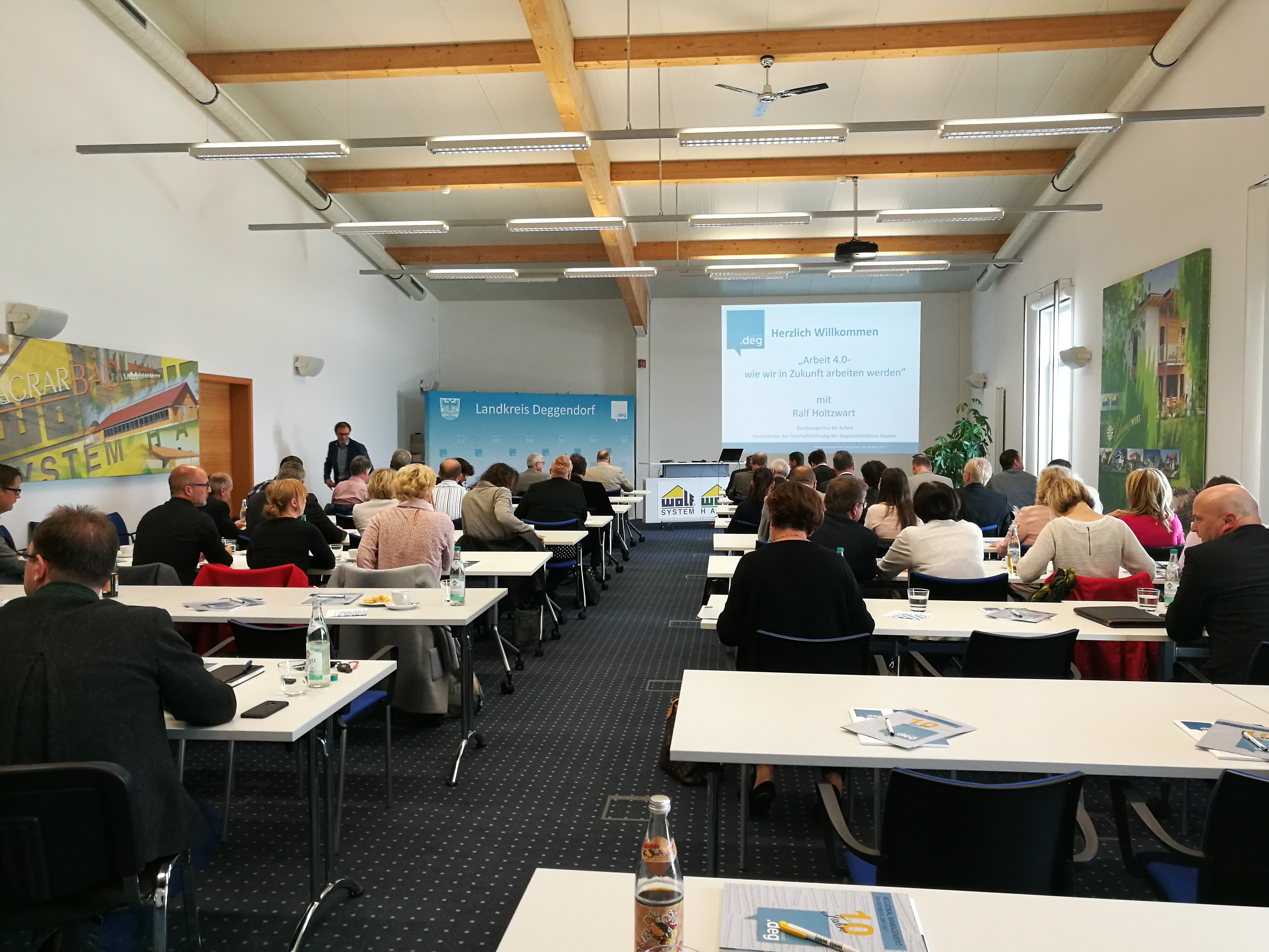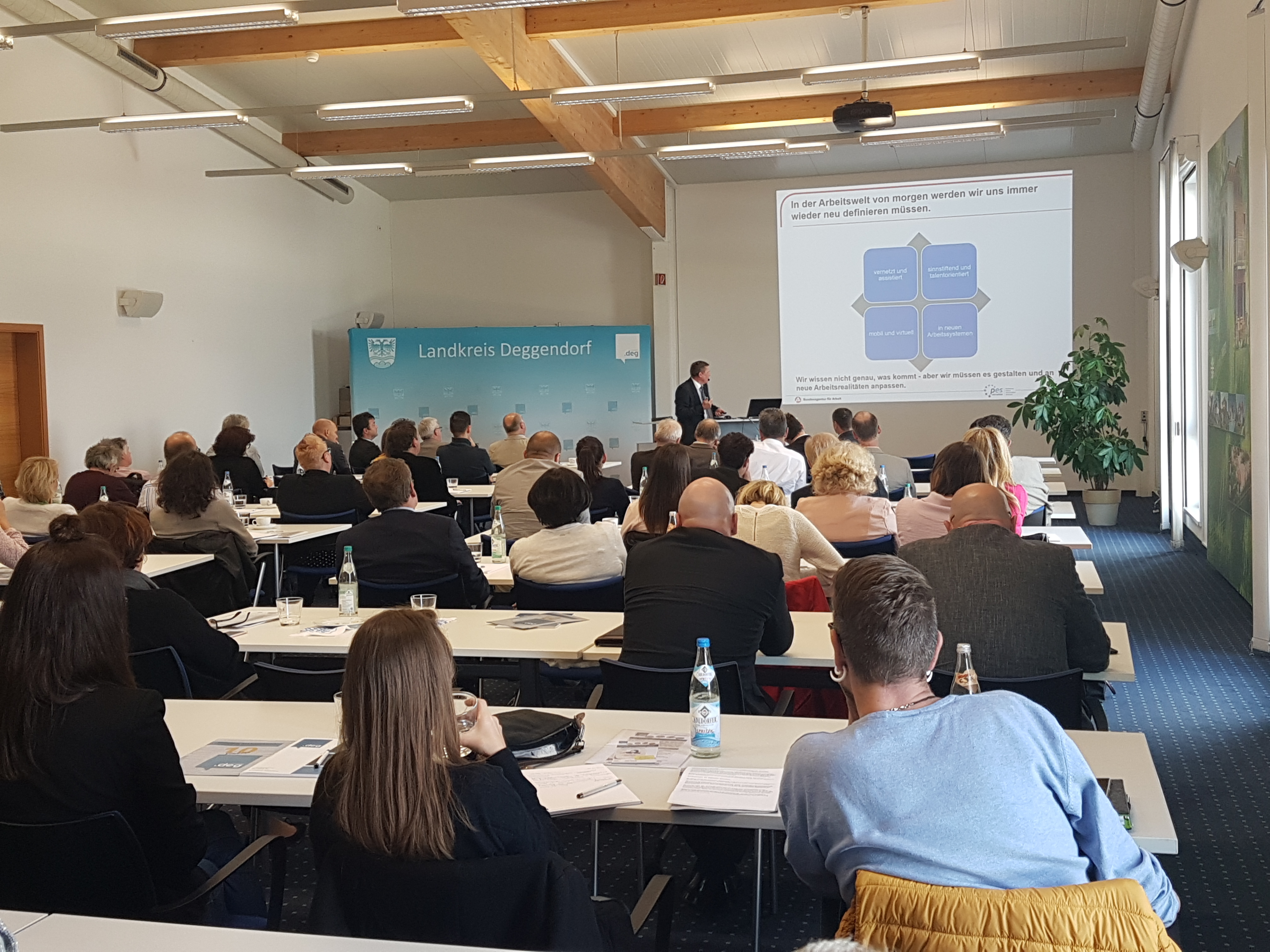 Zum Auftakt der 2. Staffel der Vortragsreihe "Vom Arbeitgeber zur ArbeitgeberMARKE" konnte das Regionalmanagement keinen Geringeren verpflichten als Ralf Holtzwart, den Vorsitzenden der Geschäftsführung der Agentur für Arbeit Bayern. In seinem kurzweiligen und praxisnahen Vortrag lieferte er viele Fakten und Ansichten über die zukünftige Art der Arbeit. Zugleich gab er den Unternehmern einige Tipps und Anregungen mit auf dem Weg, um auch in Zukunft erfolgreich wirtschaften zu können. Einen Schwerpunkt legte Holtzwart dabei auf die Veränderungen durch die Digitalisierung- er verwies sowohl auf die Herausforderungen als aber auch auf die vielen Vorteile und Chancen. Diese müssen die Unternehmer wahrnehmen! "Jeder Unternehmer muss sich fragen: wie kann ich mein Produkt durch die Digitalisierung besser machen? Die größten Fehler werden gemacht, wenn es einer Wirtschaft gut geht. Uns geht´s schon sehr lange sehr gut. Deshalb müssen wir sehr gut aufpassen, nicht genau jetzt entscheidende Fehler zu machen", so Holtzwart zusammenfassend. Neben den Produkten ging Holtzwart auch auf den Arbeitsmarkt ein. So lasse sich kein Beruf durch die Digitalisierung komplett ersetzen. Aber viele Berufe werden sich in Zukunft sehr stark verändern. Als Schlüssel sah er hier die hochwertige Ausbildung: "Statistiken zeigen, dass je höher der Ausbildungsgrad sich die Berufe nicht so einfach ersetzen lassen. Deshalb müssen wir schauen, dass wir in Sachen Ausbildung und Weiterqualifikation möglichst viele Leute erreichen. Da müssen auch die Unternehmer aktiver werden", nennt Holtzwart den zukünftigen Weg.
