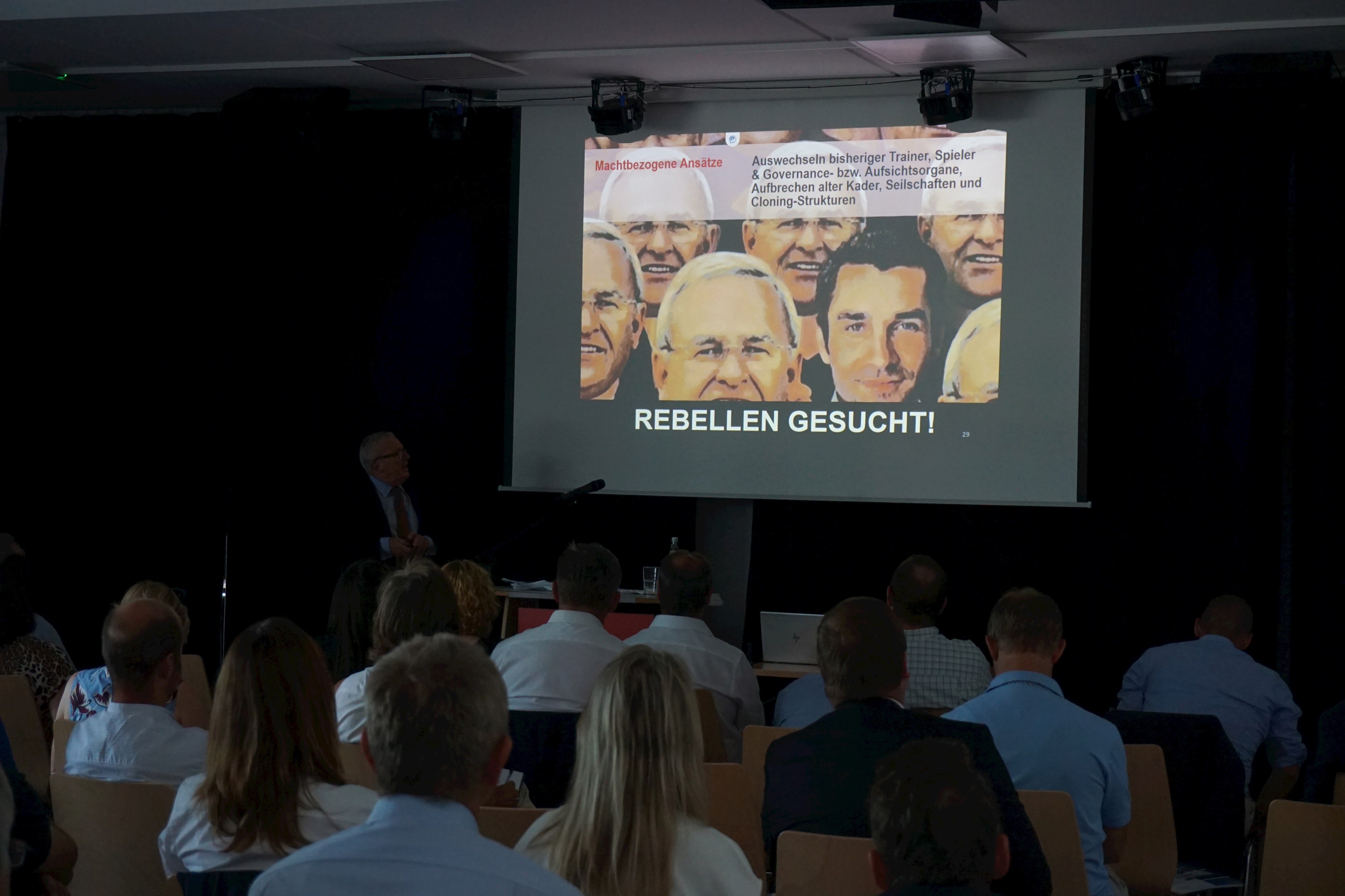 Bei seinem Vortrag ging er mit bekannt klaren Worten auf aktuelle Probleme der Führungsetagen und der aktuellen Denk- und Arbeitsweise ein. Womit er eine perfekte Vorlage zu einer interessanten Diskussion gab. So diskutierten die Unternehmer mit Thomas Sattelberger sehr intensiv zu einigen Themen und setzten die Gespräche anschließend bei einem Imbiss fort.