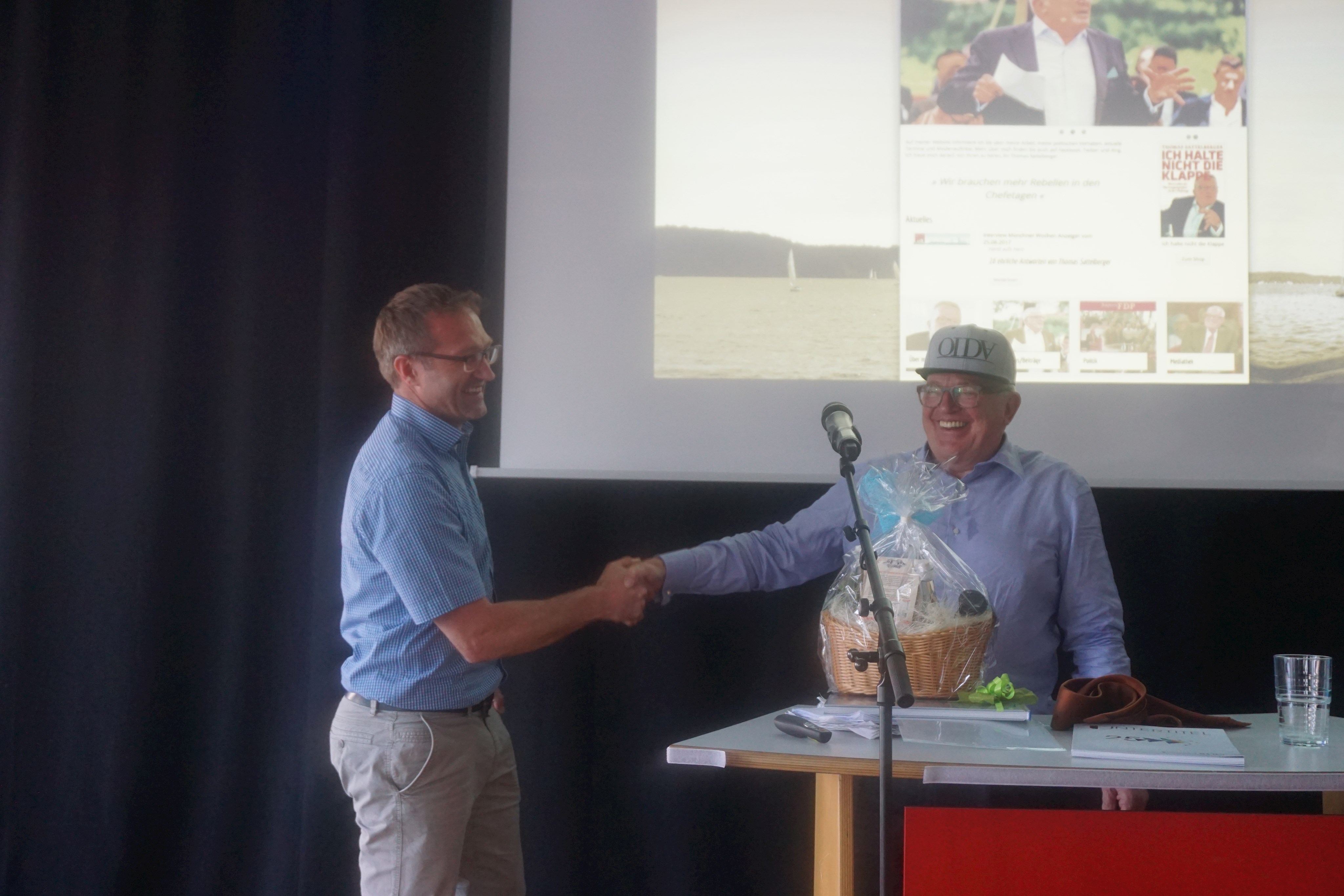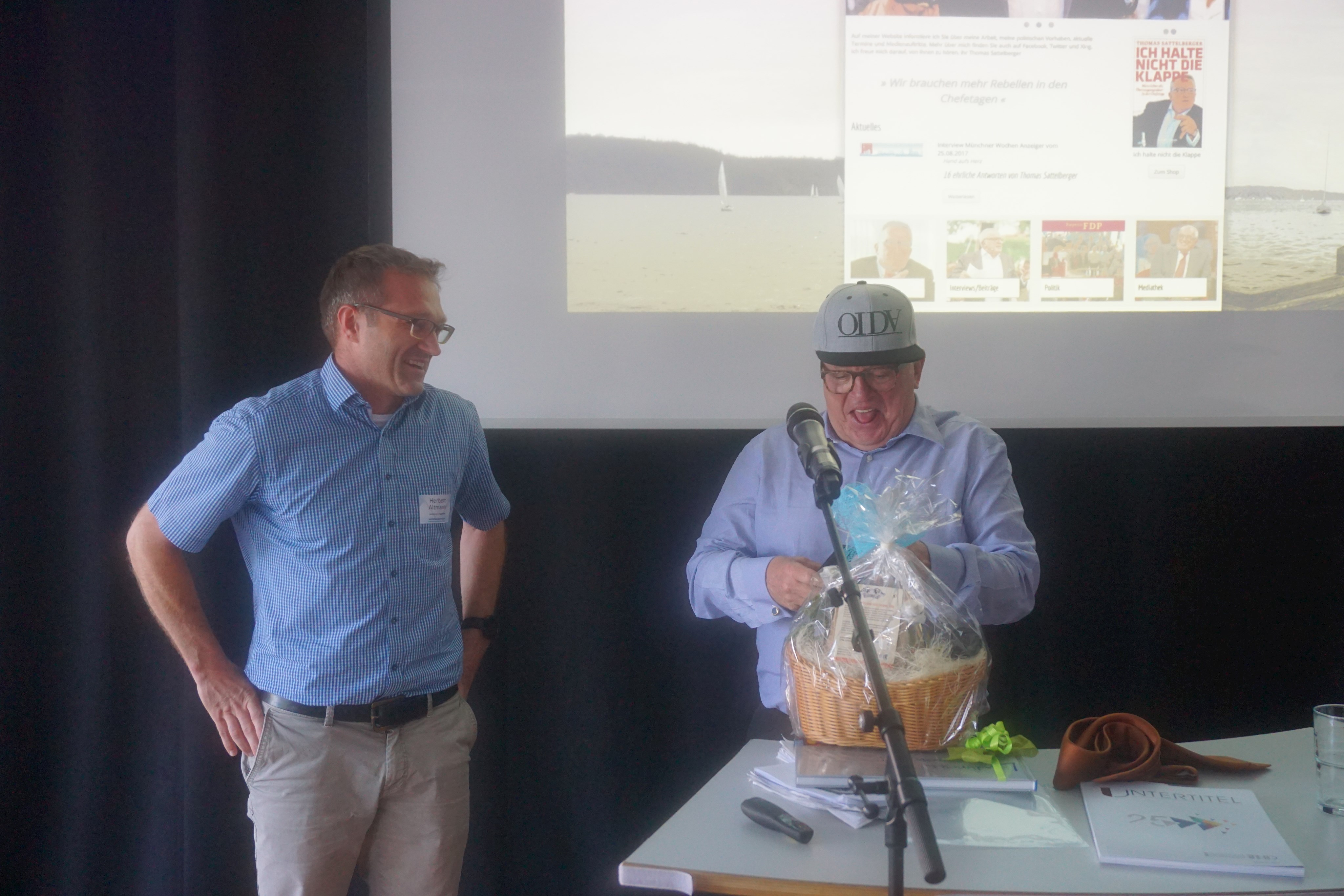 Die Veranstaltung mit Thomas Sattelberger wurde durch die Vermittlung von Anton Schied, Ausbildungsleiter bei Webasto in Hengersberg möglich. Er nutzte seine Kontakte zu seinem früheren Vorgesetzten und stellte so die Basis für die Veranstaltung. Als Dank erhielt er ebenfalls ein kleines Präsent- insbesondere das OIDA-Cap!