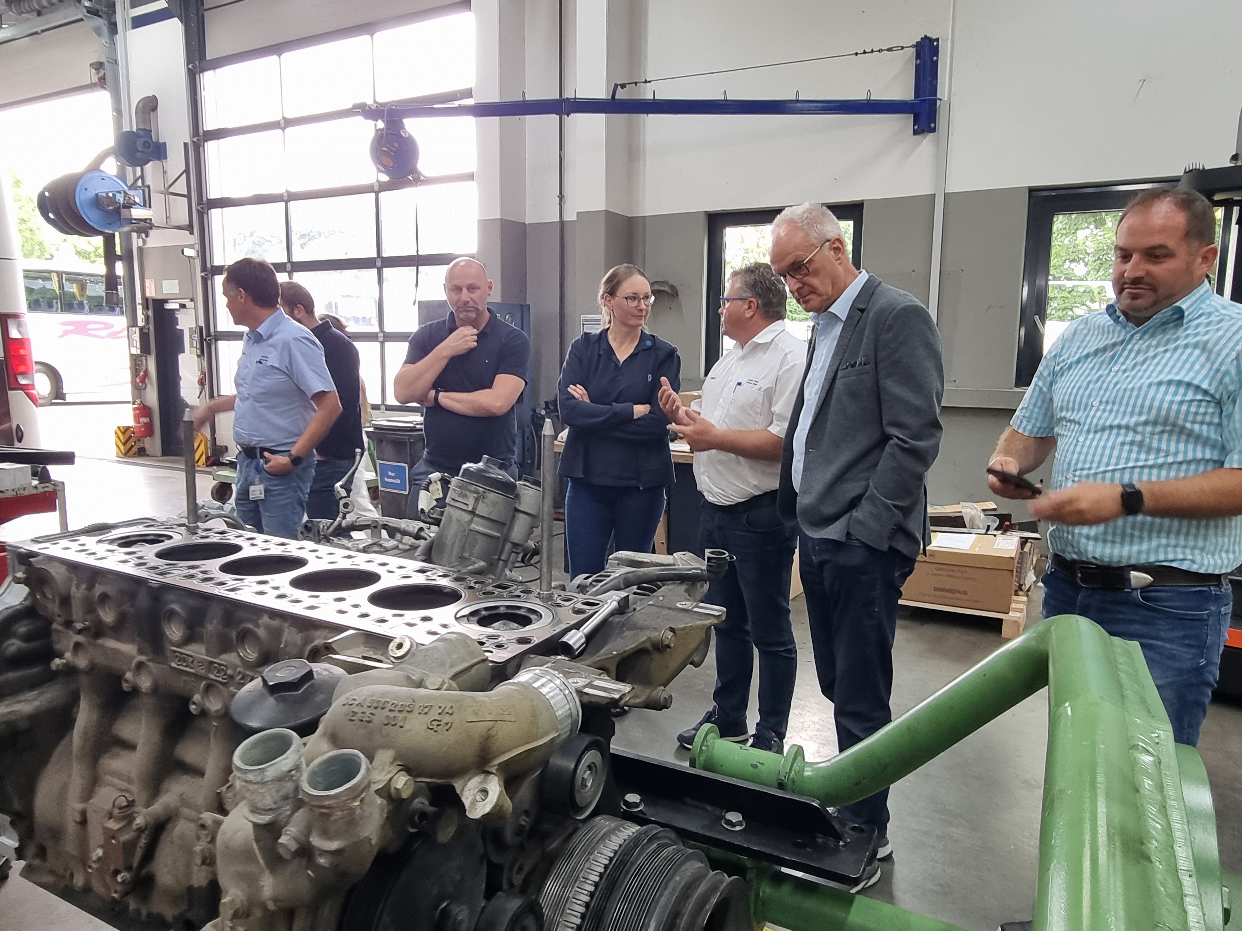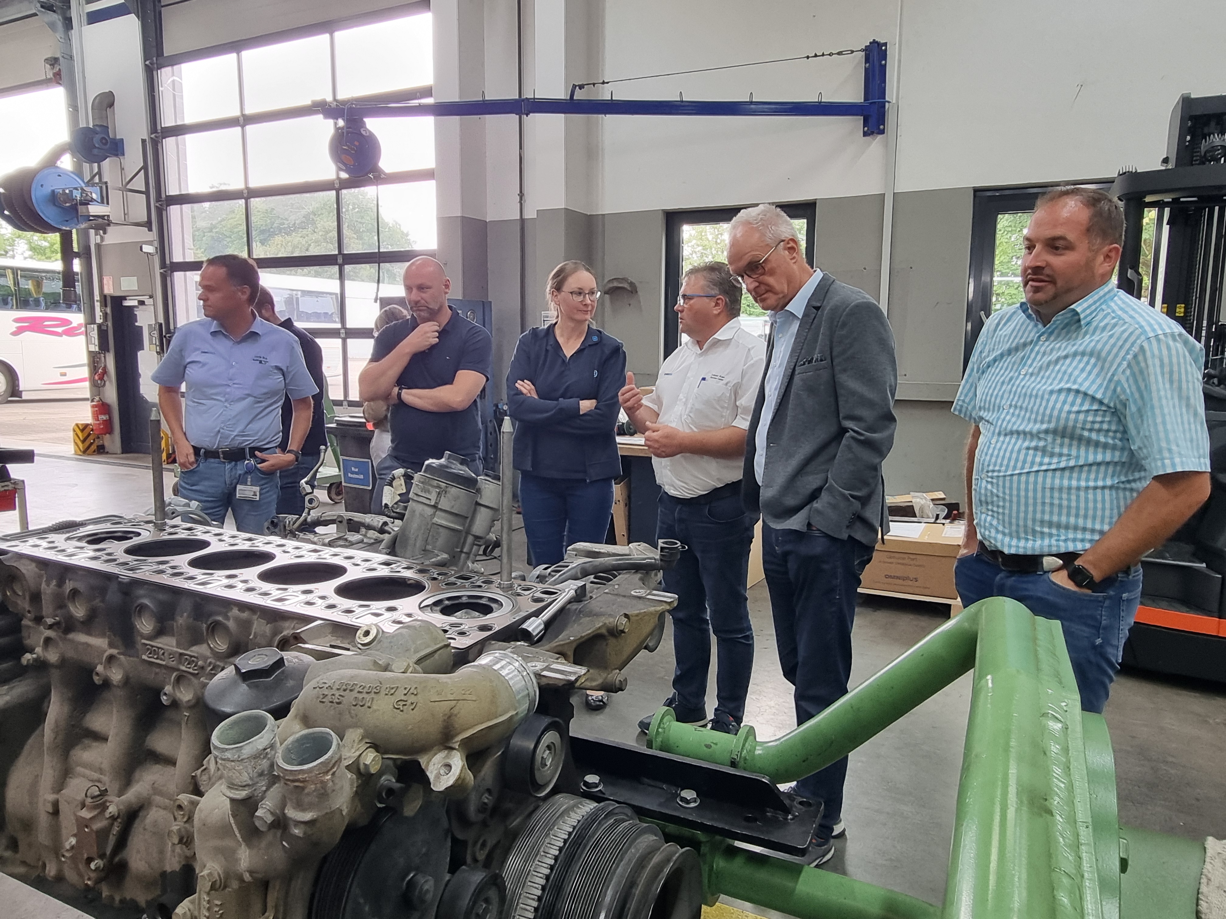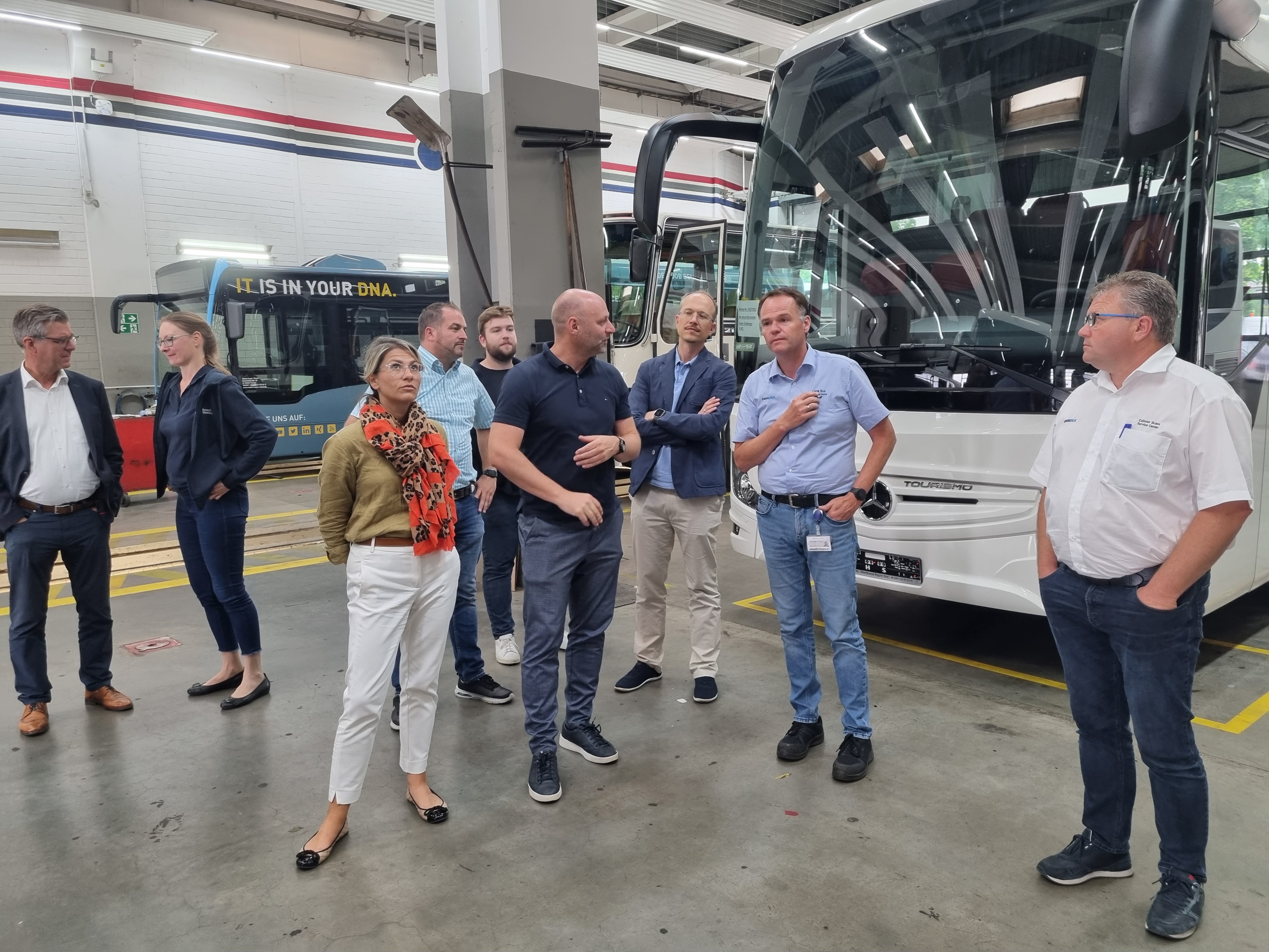 Beim Rundgang überzeugten sich die Unternehmer von der Niederlassung und stellten viele Fragen rund um den Ablauf und die Rahmenbedingungen bei Daimler Buses.
