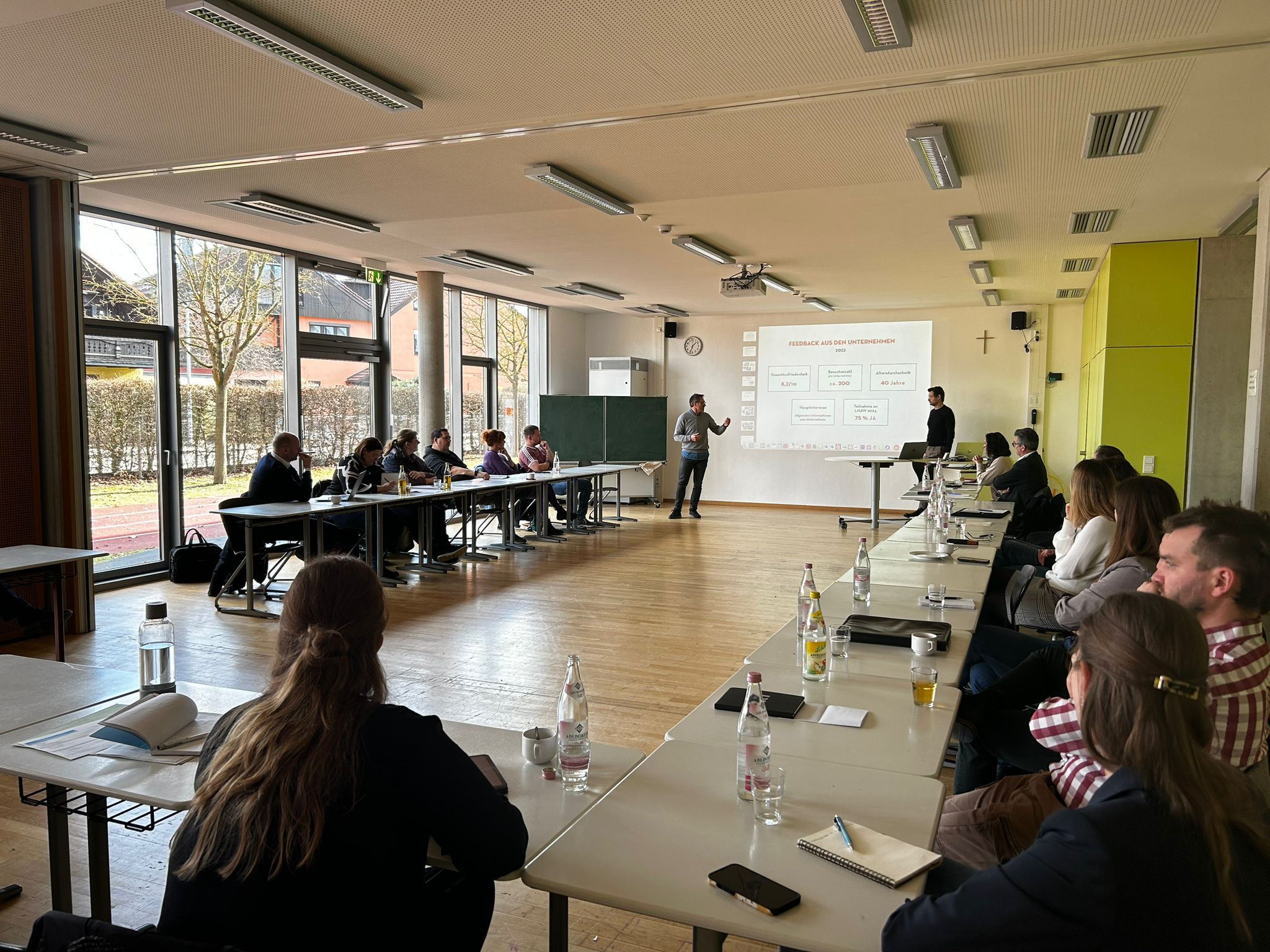 Im Anschluss stellte Waltraud Eder ihre Ideen für eine Zusammenarbeit vor. Vor allem das Angebot einer Vermittlung von freiwilligen Schnupper-Praktika nahmen die Unternehmen sehr gerne auf. Dieses soll in den nächsten Wochen weiterverfolgt werden.